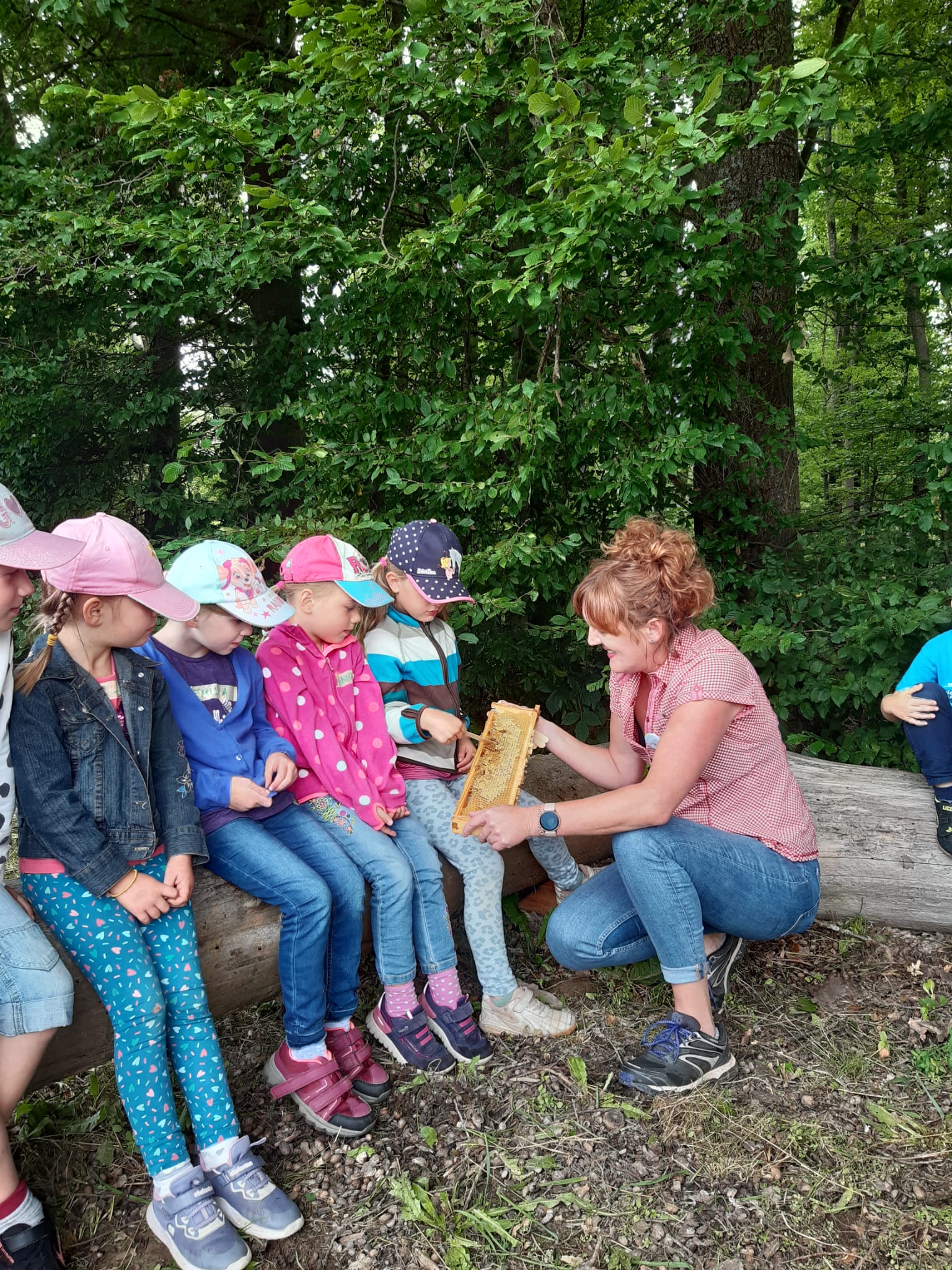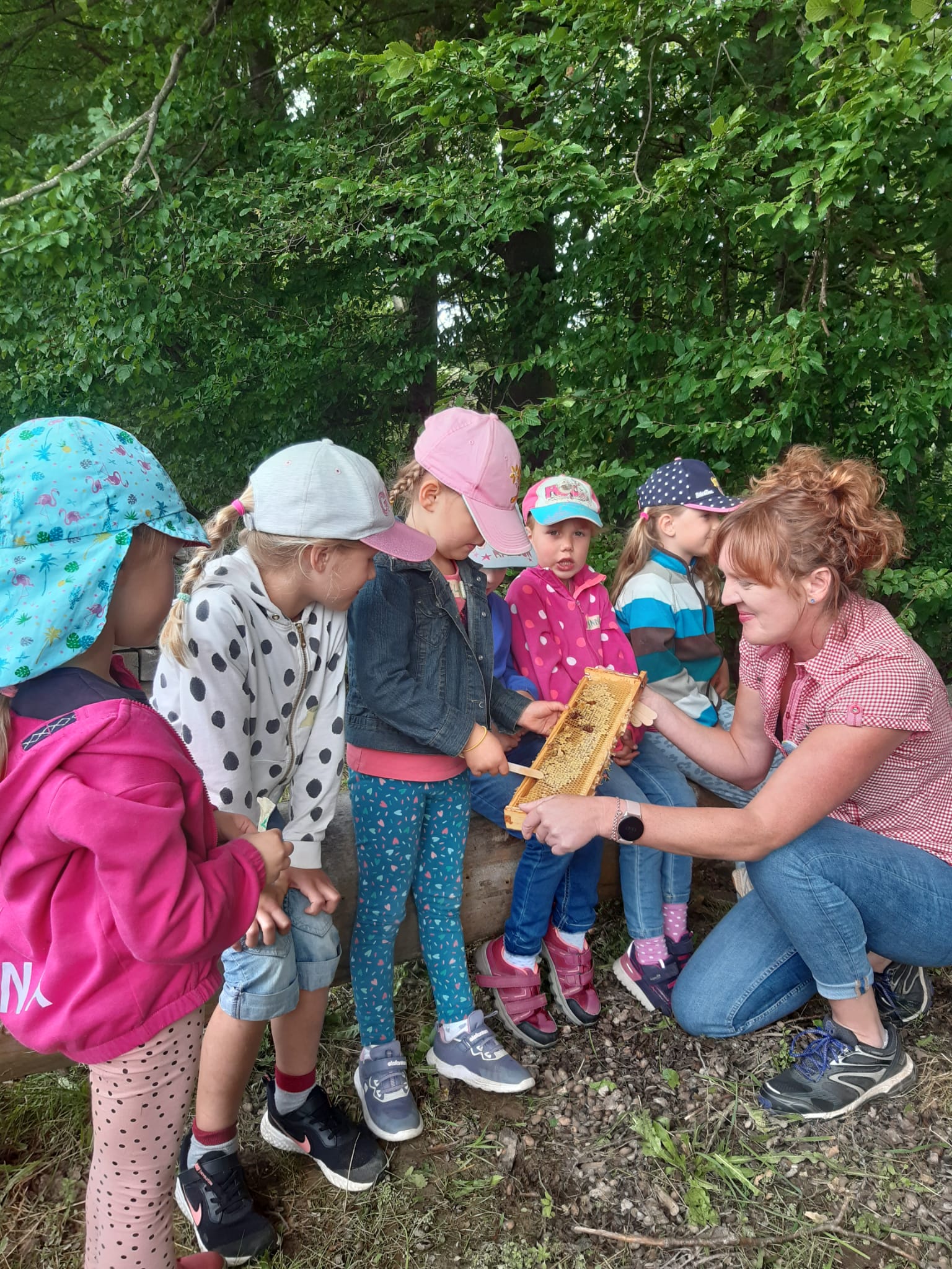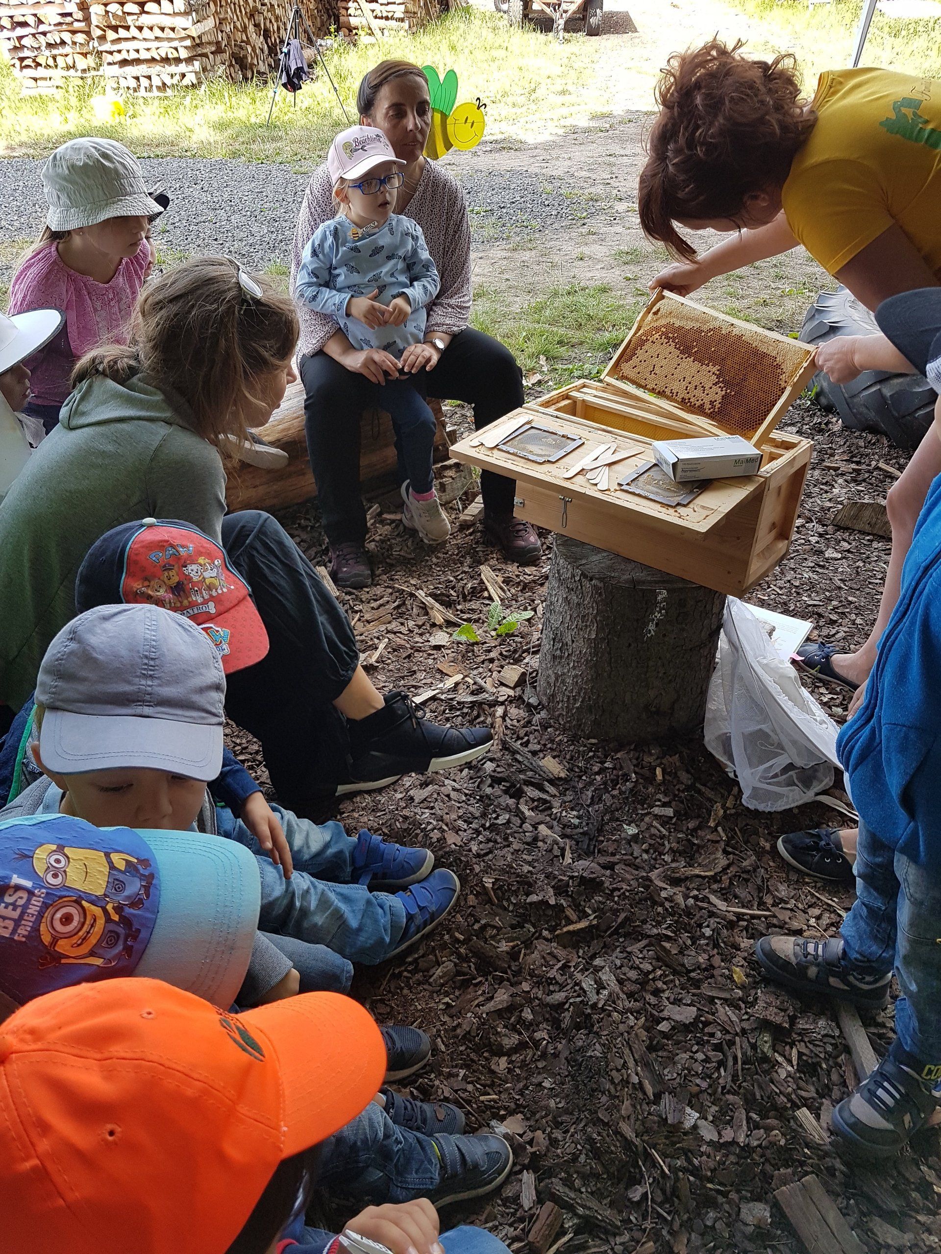 Der Kindergarten besuchte das Bienenhaus am Wald