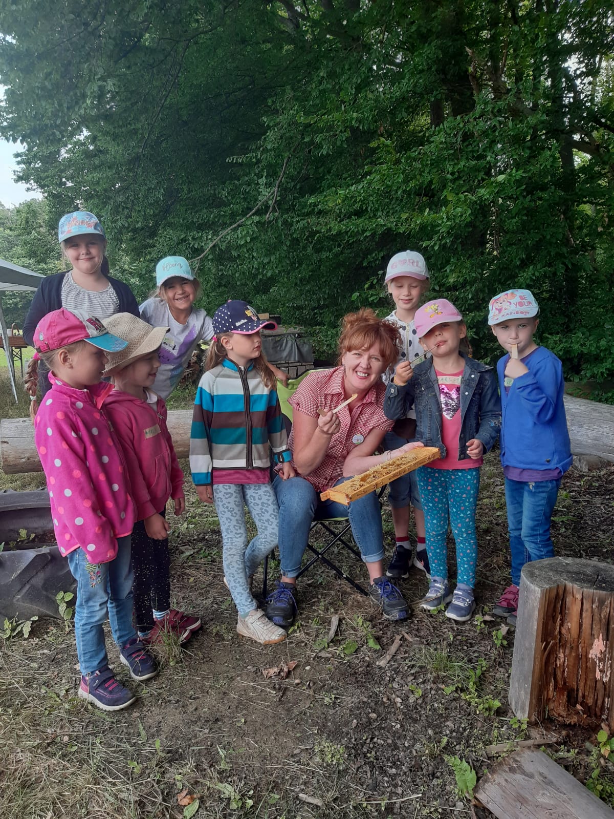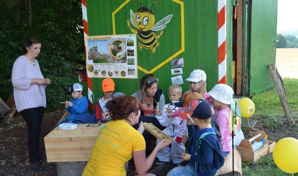 13.07.2018 mit 11 Kindern am Bienenhaus und hat die Honig- & und Bienenwelt erforscht!