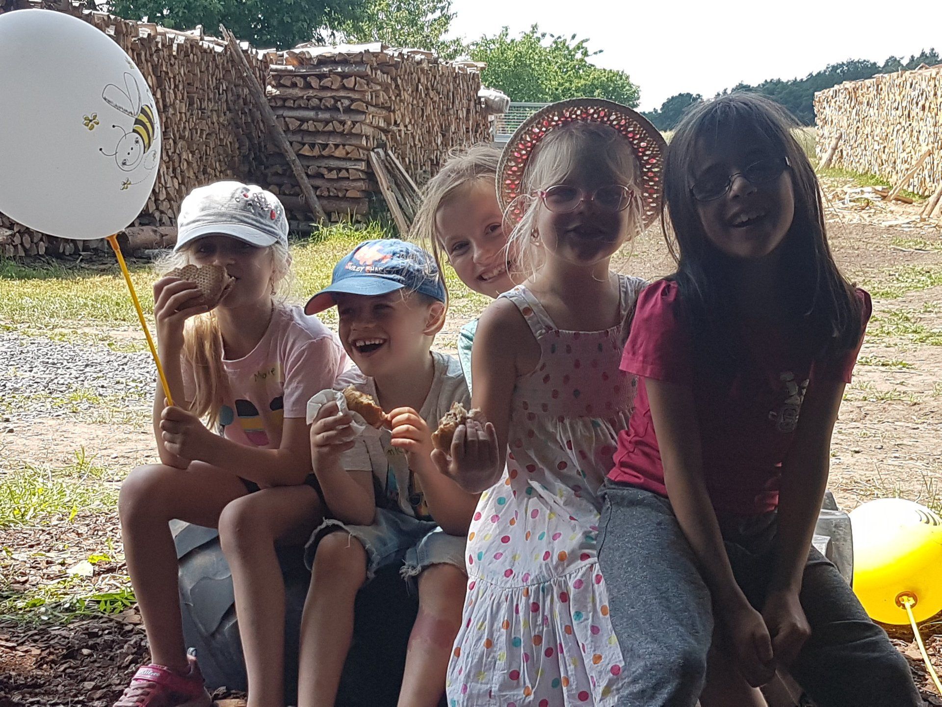 16 Kinder nahmen am Samstag den 7.8.2021 am Ferienprogramm „Bienen-und Honigwelt erforschen“ teil. Naturverbunden und spielerisch entdeckten die Kinder bei einem gemeinsamen Frühstück mit Brötchen, Butter und Honig die Welt der kleinen Honigbiene. Genüsslich schleckten die Kinder den Honig aus einer frisch entnommenen Honigwabe vom Bienenstock. Ein Highlight auch das Traktorfahren in der "Kuffte" mit Josef. Und zum Abschluss gab es noch ein paar gegrillte Bratwürste.