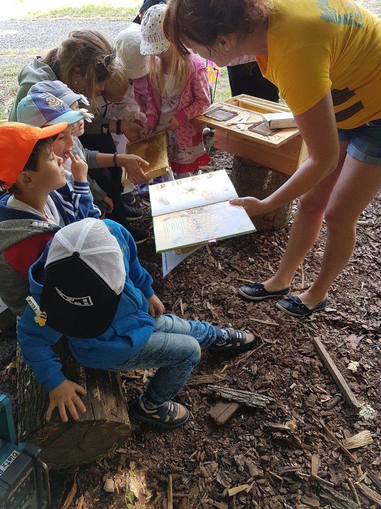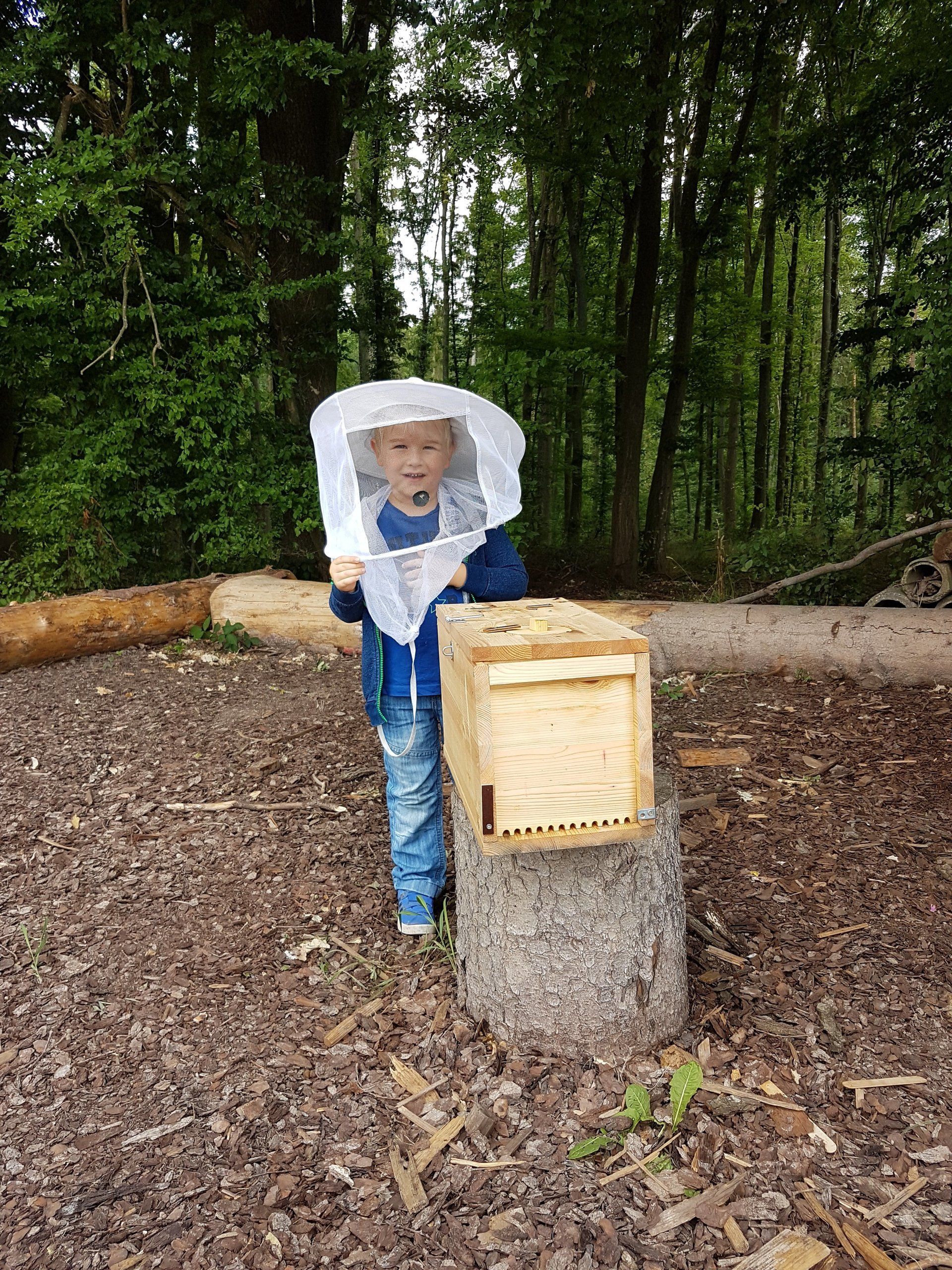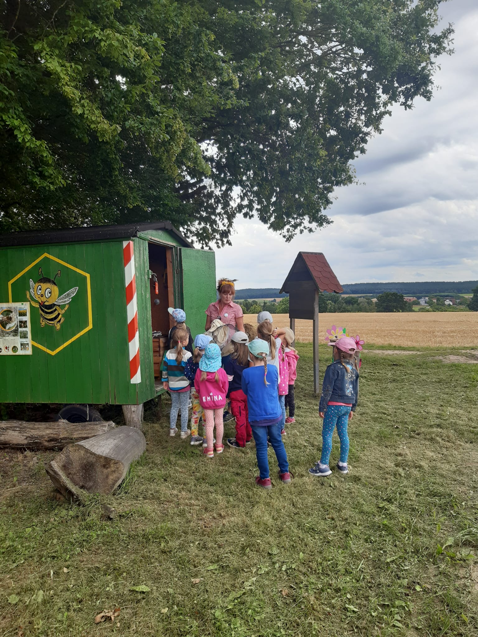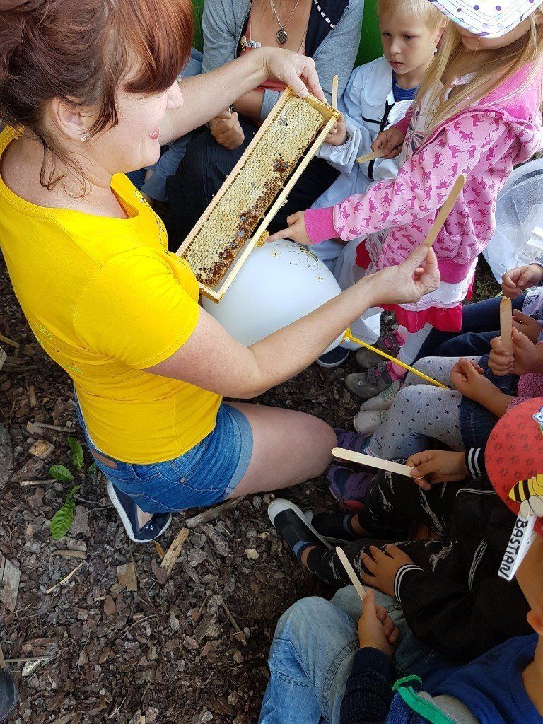 Der Kindergarten besuchte das Bienenhaus am Wald