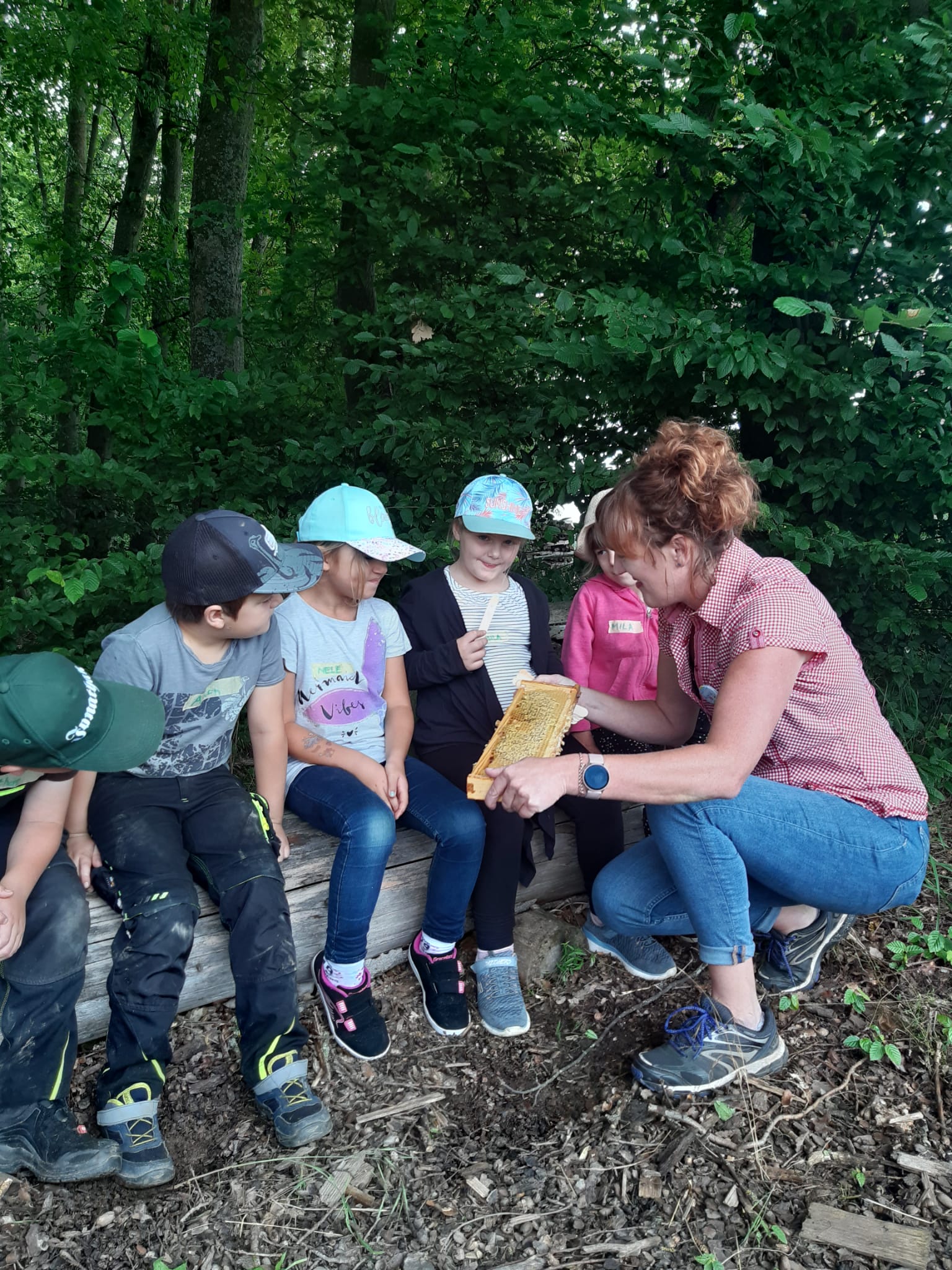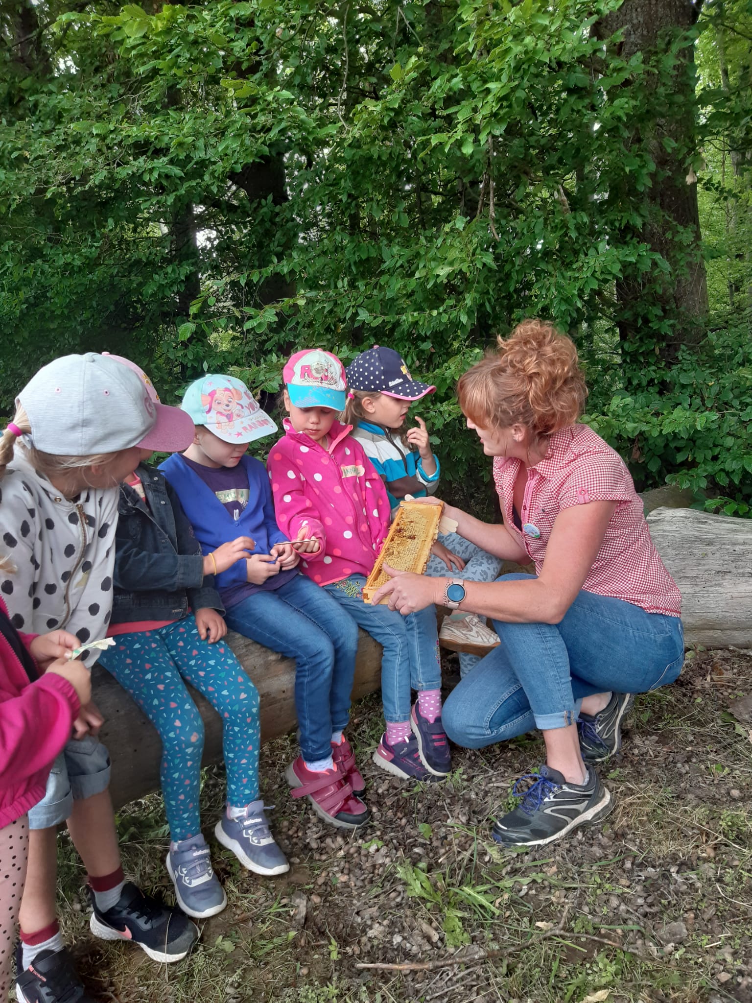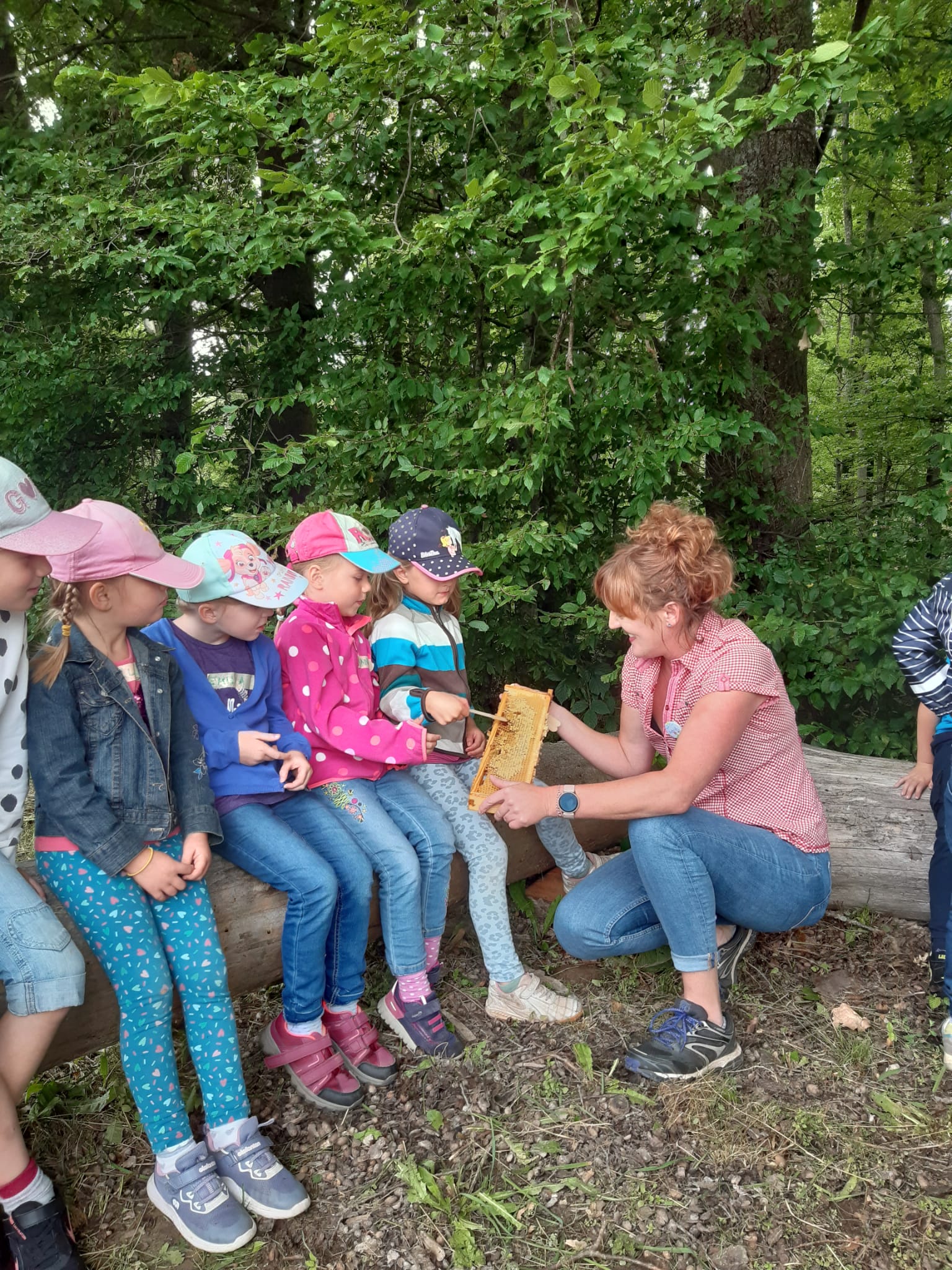 Der Kindergarten besuchte das Bienenhaus am Wald