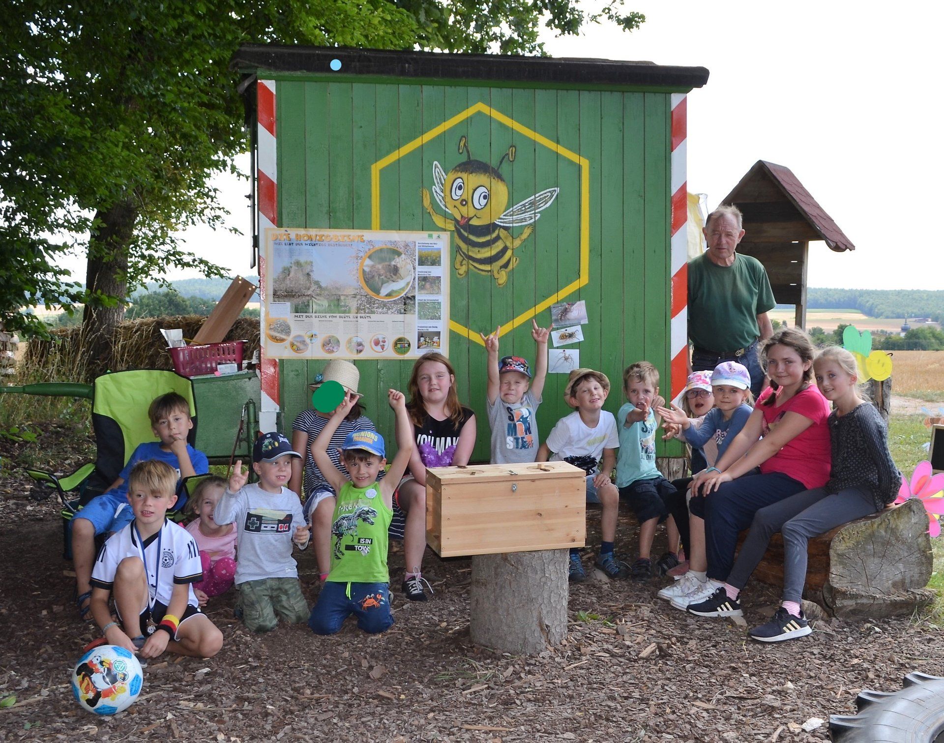 13.07.2018 mit 11 Kindern am Bienenhaus und hat die Honig- & und Bienenwelt erforscht!